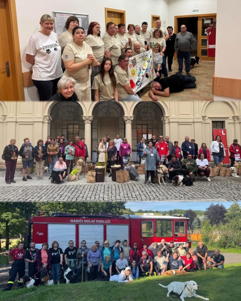 Sbor dobrovolných hasičů z Dolního Podluží tentokrát nehasil pivovárek ani cokoliv jiného. Prostě, když skončila šichta, vzali nástroje a pomůcky, naložili sebe i potřebné věci do auťáku a přijeli za námi k rybníku. Prý si s námi vyzkoušejí záchranu nevidomých a jejich psů při povodni. Bezva. Tak jsme se postupně nalodili do záchranářského člunu a obepluli rybník. Pesanům vadilo, že se nemohou vykoupat, ale evakuovaní jedinci byli spokojení. Nikdo se neutopil, dokonce ani nenamočil. Jsme my to všichni šikulkové!