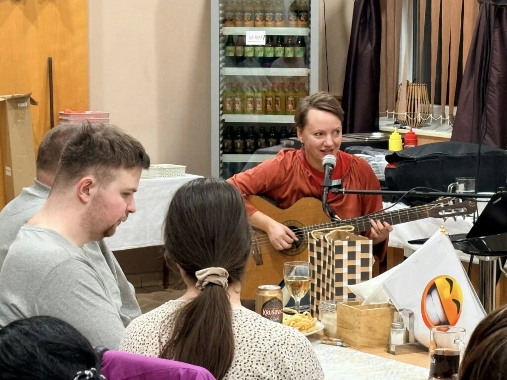 Večer jsme si užili skvělé koncerty. Nejdřív vystoupení zpěvačky Milli Janatkové a u kapely Illegální Bobr – Děda Mládek show byl takový rachot, že se divím, že jsme tu posluchárnu nezbořili.